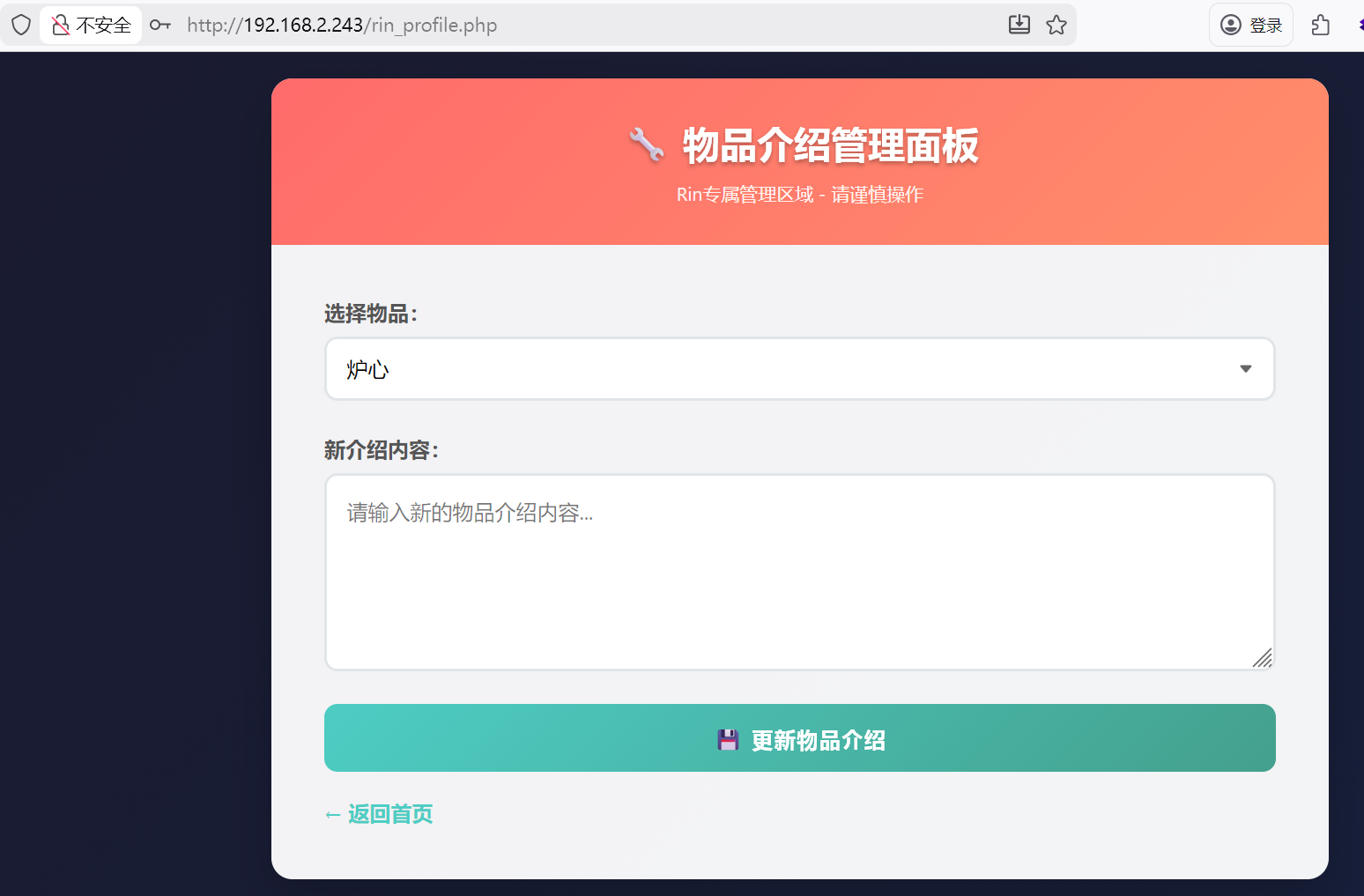 ┌──(root㉿kali)-[/miaosec] └─# nmap --min-rate 10000 -p- 192.168.2.243 Starting Nmap 7.94SVN ( https://nmap.org ) at 2026-01-05 10:38 CST Nmap scan report for 192.168.2.243 Host is up (0.00019s latency). Not shown: 65533 closed tcp ports (reset) PORT STATE SERVICE 22/tcp open ssh 80/tcp open http MAC Address: 08:00:27:01:78:BE (Oracle VirtualBox virtual NIC)