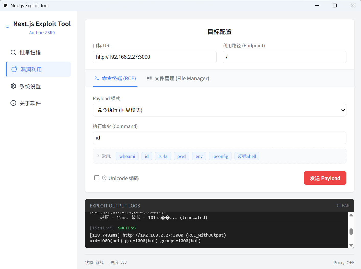 PORT STATE SERVICE VERSION 22/tcp open ssh OpenSSH 8.4p1 Debian 5+deb11u3 (protocol 2.0) | ssh-hostkey: | 3072 f6:a3:b6:78:c4:62:af:44:bb:1a:a0:0c:08:6b:98:f7 (RSA) | 256 bb:e8:a2:31:d4:05:a9:c9:31:ff:62:f6:32:84:21:9d (ECDSA) |_ 256 3b:ae:34:64:4f:a5:75:b9:4a:b9:81:f9:89:76:99:eb (ED25519) 80/tcp open http Apache httpd 2.4.62 ((Debian)) |_http-title: \xE7\xBD\x91\xE7\xBB\x9C\xE8\xAF\x8A\xE6\x96\xAD\xE5\xB7\xA5\xE5\x85\xB7 |_http-server-header: Apache/2.4.62 (Debian) 3000/tcp open ppp? | fingerprint-strings: | GetRequest: | HTTP/1.1 200 OK | Vary: RSC, Next-Router-State-Tree, Next-Router-Prefetch, Next-Router-Segment-Prefetch, Accept-Encoding | x-nextjs-cache: HIT | x-nextjs-prerender: 1 | x-nextjs-stale-time: 4294967294 | X-Powered-By: Next.js | Cache-Control: s-maxage=31536000, | ETag: "vhwrqricd17bt" | Content-Type: text/html; charset=utf-8 | Content-Length: 9497 | Date: Tue, 16 Dec 2025 07:16:30 GMT | Connection: close | <!DOCTYPE html><html lang="en"><head><meta charSet="utf-8"/><meta name="viewport" content="width=device-width, initial-scale=1"/><link rel="preload" as="image" href="/next.svg"/><link rel="stylesheet" href="/_next/static/css/97f208c543225968.css" data-precedence="next"/><link rel="preload" as="script" fetchPriority="low" href="/_next/static/chunks/webpack-744ee3f145013e34.js"/><script src="/_next/static/chunks/4bd1b696-6985518451956beb.js" async=""></script><script src="/_next/static/chunks/215- | HTTPOptions, RTSPRequest: | HTTP/1.1 400 Bad Request | vary: RSC, Next-Router-State-Tree, Next-Router-Prefetch, Next-Router-Segment-Prefetch | Allow: GET | Allow: HEAD | Cache-Control: private, no-cache, no-store, max-age=0, must-revalidate | Date: Tue, 16 Dec 2025 07:16:30 GMT | Connection: close | Help, NCP: | HTTP/1.1 400 Bad Request |_ Connection: close 1 service unrecognized despite returning data. If you know the service/version, please submit the following fingerprint at https://nmap.org/cgi-bin/submit.cgi?new-service : SF-Port3000-TCP:V=7.94SVN%I=7%D=12/16%Time=6941074F%P=x86_64-pc-linux-gnu% SF:r(GetRequest,26A9,"HTTP/1\.1\x20200\x20OK\r\nVary:\x20RSC,\x20Next-Rout SF:er-State-Tree,\x20Next-Router-Prefetch,\x20Next-Router-Segment-Prefetch SF:,\x20Accept-Encoding\r\nx-nextjs-cache:\x20HIT\r\nx-nextjs-prerender:\x SF:201\r\nx-nextjs-stale-time:\x204294967294\r\nX-Powered-By:\x20Next\.js\ SF:r\nCache-Control:\x20s-maxage=31536000,\x20\r\nETag:\x20\"vhwrqricd17bt SF:\"\r\nContent-Type:\x20text/html;\x20charset=utf-8\r\nContent-Length:\x SF:209497\r\nDate:\x20Tue,\x2016\x20Dec\x202025\x2007:16:30\x20GMT\r\nConn SF:ection:\x20close\r\n\r\n<!DOCTYPE\x20html><html\x20lang=\"en\"><head><m SF:eta\x20charSet=\"utf-8\"/><meta\x20name=\"viewport\"\x20content=\"width SF:=device-width,\x20initial-scale=1\"/><link\x20rel=\"preload\"\x20as=\"i SF:mage\"\x20href=\"/next\.svg\"/><link\x20rel=\"stylesheet\"\x20href=\"/_ SF:next/static/css/97f208c543225968\.css\"\x20data-precedence=\"next\"/><l SF:ink\x20rel=\"preload\"\x20as=\"script\"\x20fetchPriority=\"low\"\x20hre SF:f=\"/_next/static/chunks/webpack-744ee3f145013e34\.js\"/><script\x20src SF:=\"/_next/static/chunks/4bd1b696-6985518451956beb\.js\"\x20async=\"\">< SF:/script><script\x20src=\"/_next/static/chunks/215-")%r(Help,2F,"HTTP/1\ SF:.1\x20400\x20Bad\x20Request\r\nConnection:\x20close\r\n\r\n")%r(NCP,2F, SF:"HTTP/1\.1\x20400\x20Bad\x20Request\r\nConnection:\x20close\r\n\r\n")%r SF:(HTTPOptions,10C,"HTTP/1\.1\x20400\x20Bad\x20Request\r\nvary:\x20RSC,\x SF:20Next-Router-State-Tree,\x20Next-Router-Prefetch,\x20Next-Router-Segme SF:nt-Prefetch\r\nAllow:\x20GET\r\nAllow:\x20HEAD\r\nCache-Control:\x20pri SF:vate,\x20no-cache,\x20no-store,\x20max-age=0,\x20must-revalidate\r\nDat SF:e:\x20Tue,\x2016\x20Dec\x202025\x2007:16:30\x20GMT\r\nConnection:\x20cl SF:ose\r\n\r\n")%r(RTSPRequest,10C,"HTTP/1\.1\x20400\x20Bad\x20Request\r\n SF:vary:\x20RSC,\x20Next-Router-State-Tree,\x20Next-Router-Prefetch,\x20Ne SF:xt-Router-Segment-Prefetch\r\nAllow:\x20GET\r\nAllow:\x20HEAD\r\nCache- SF:Control:\x20private,\x20no-cache,\x20no-store,\x20max-age=0,\x20must-re SF:validate\r\nDate:\x20Tue,\x2016\x20Dec\x202025\x2007:16:30\x20GMT\r\nCo SF:nnection:\x20close\r\n\r\n"); MAC Address: 08:00:27:40:AA:43 (Oracle VirtualBox virtual NIC) Warning: OSScan results may be unreliable because we could not find at least 1 open and 1 closed port Device type: general purpose Running: Linux 4.X|5.X OS CPE: cpe:/o:linux:linux_kernel:4 cpe:/o:linux:linux_kernel:5 OS details: Linux 4.15 - 5.8, Linux 5.0 - 5.5 Network Distance: 1 hop Service Info: OS: Linux; CPE: cpe:/o:linux:linux_kernel